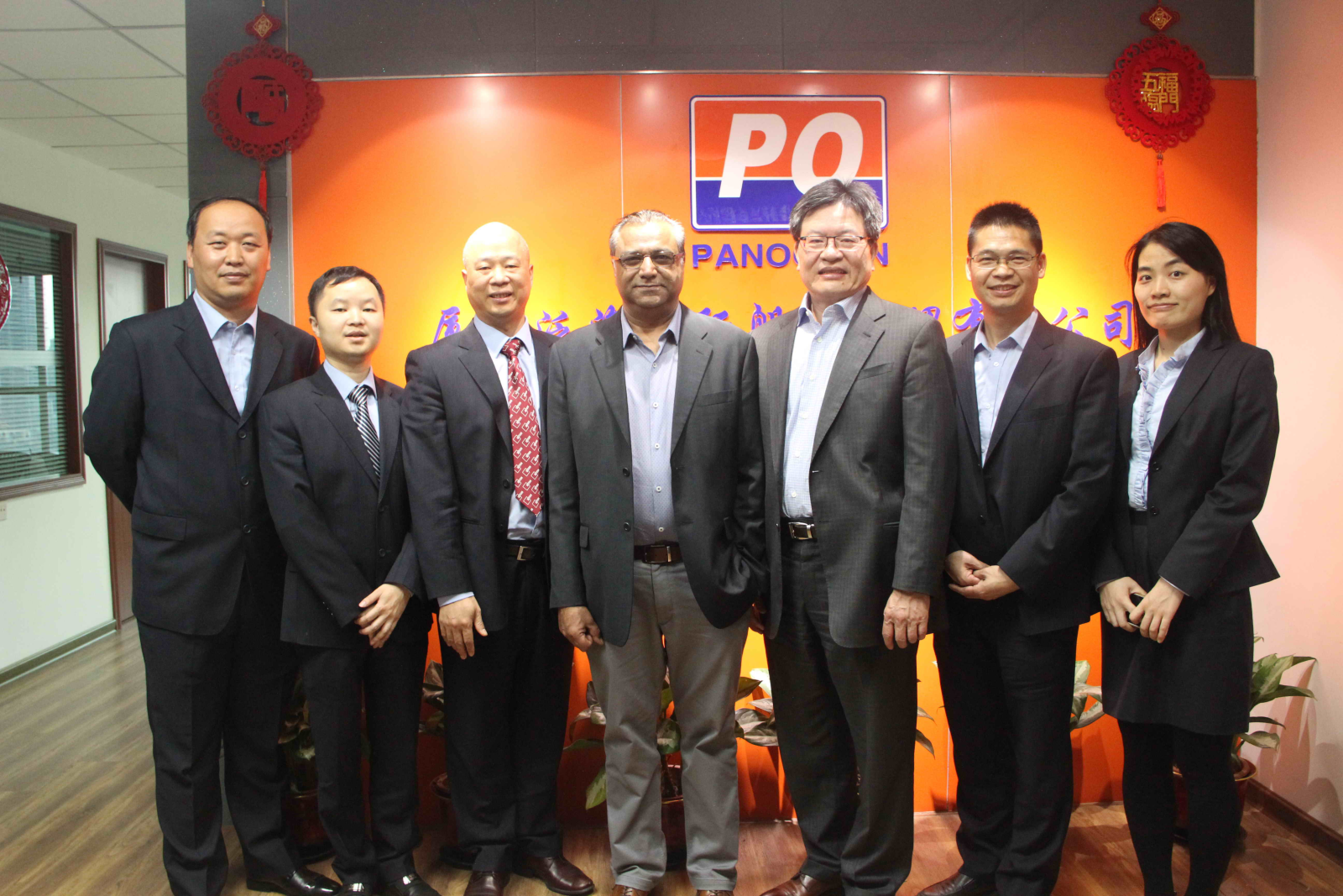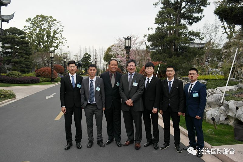 总经理D.F.Lin和与会泛海船员合影(从左到右为:E/C梅少军、C/O郭军、泛海谭船长、D.F.LIN 、E/C贺冰、3/E李阳、E/C徐星)