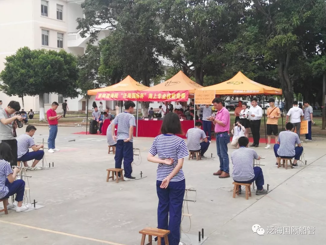 比赛设置了水手工艺竞赛与消防竞赛共两个大项赛事;水手工艺竞赛设置绳结与撇缆两个小项;消防竞赛项目内容则是单人抛接消防水带。这些都是远洋船员的基本功,也是检验学校和学生的教学成果。让我们来看看比赛选手的英姿吧: