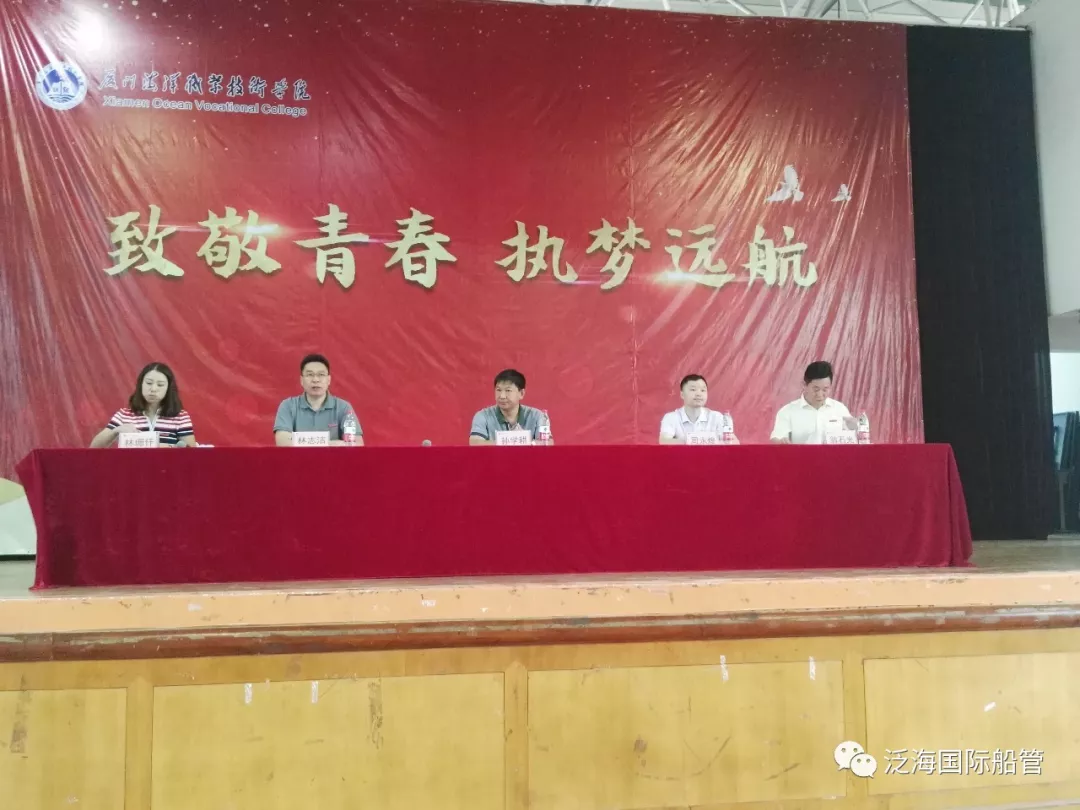 2018年5月14日早上7点,厦门海洋职业技术学院航海技术系2018年“职业教育活动周”总结表彰大会在思明校区大礼堂隆重召开。学院孙学耕副院长、航海技术系总支林志洁书记、航海技术系翁石光主任、林珊仟副主任及思明校区师生代表们到场参加,我司周永煌副总也应邀出席。