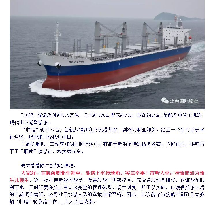 厦门泛海新闻:日本下水,首航澳洲,“顺睦”轮二副三副讲述接船经历!