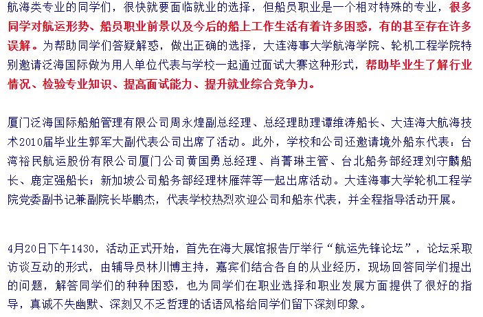 “泛海国际杯”船员面试大赛在大连海事大学顺利举办!——厦门泛海